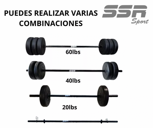 Kit de Pesas 2 en 1: Mancuernas + Barra conectable 40lbs